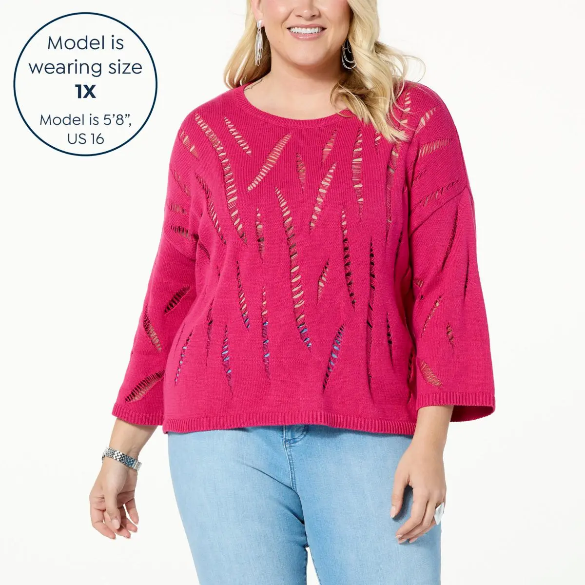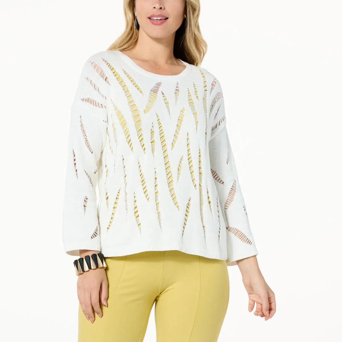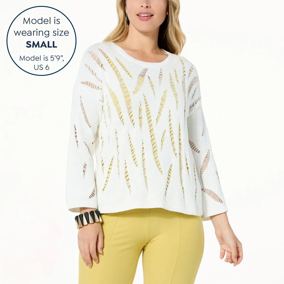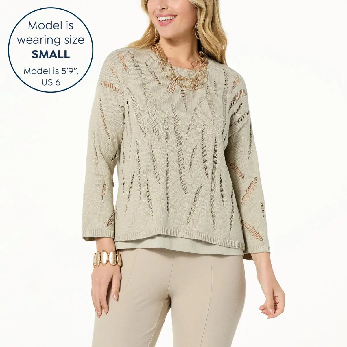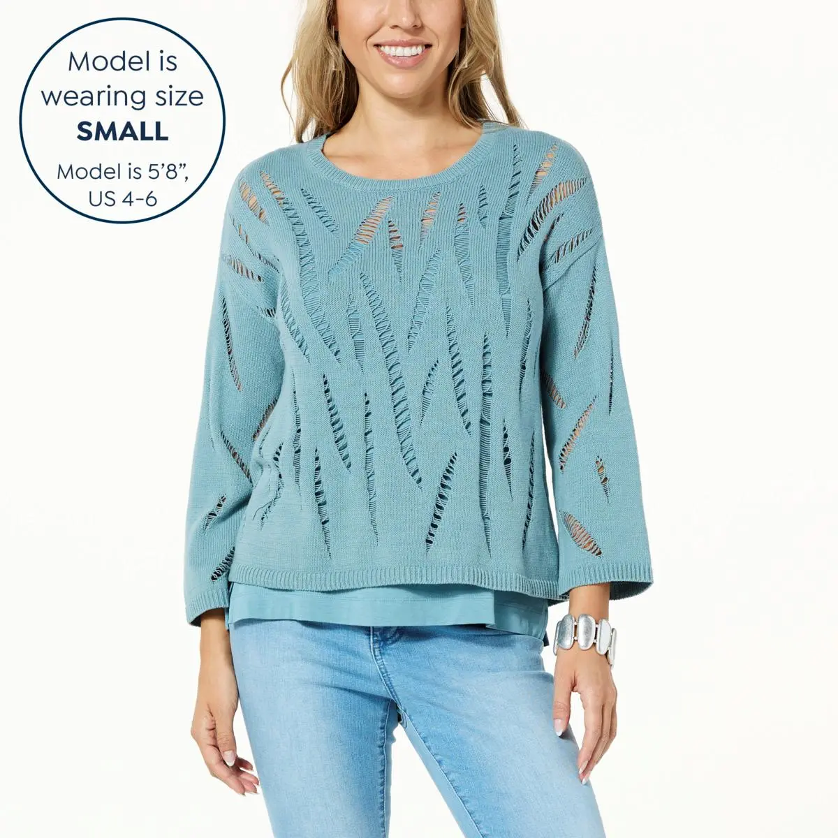 WynneLayers Cotton Moving Pointelle Stitch Sweater This soft, cotton pointelle-stitch top is an easy and effortless way to bring the fall vibes to any season, whether you’re in the office or out with friends.