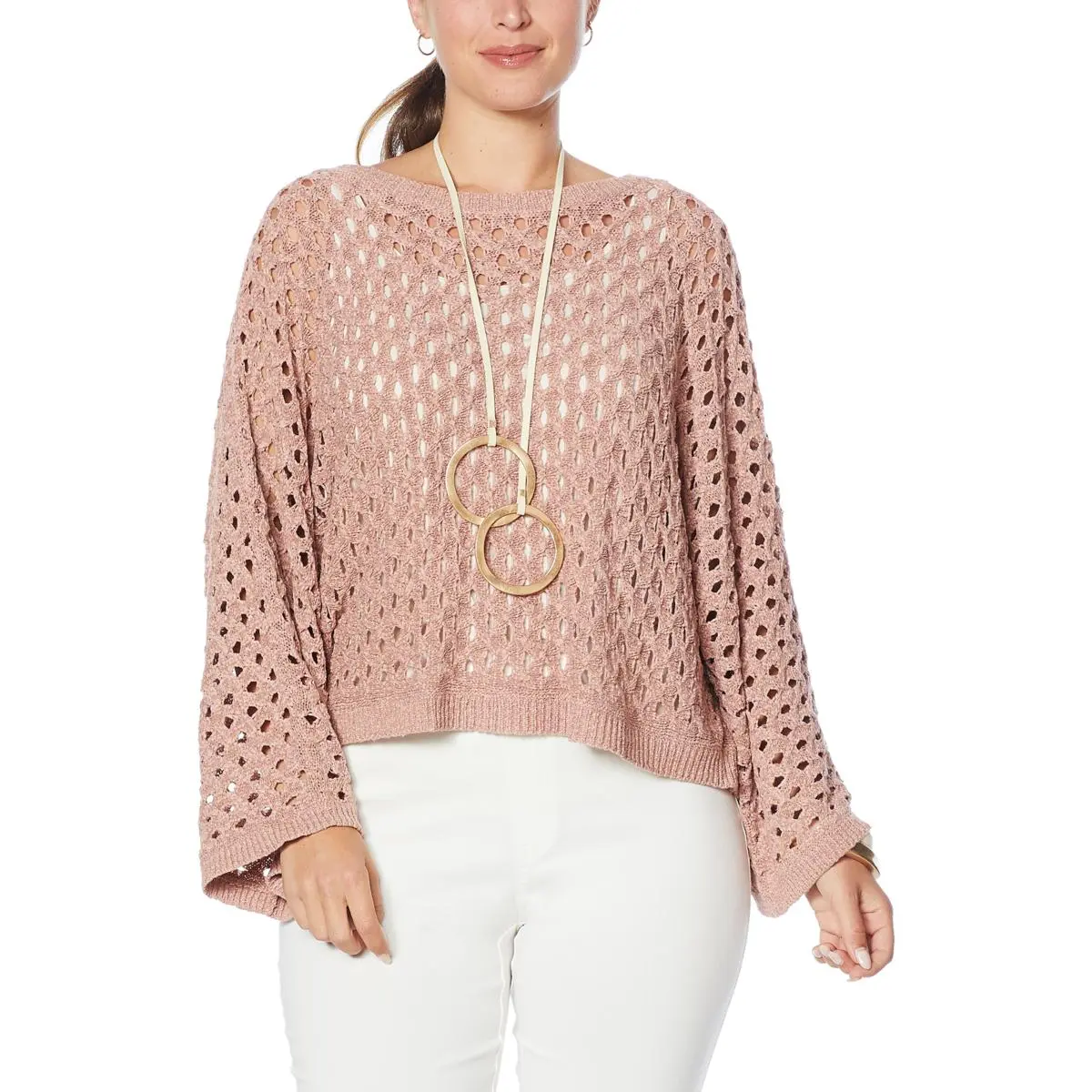 WynneLayers Open Stitch Textured Popover We love the versatility of this lightweight sweater knit popover from WynneLayers. Voluminous batwing sleeves, open knit stitching and a slightly cropped silhouette give it endless layering opportunities.