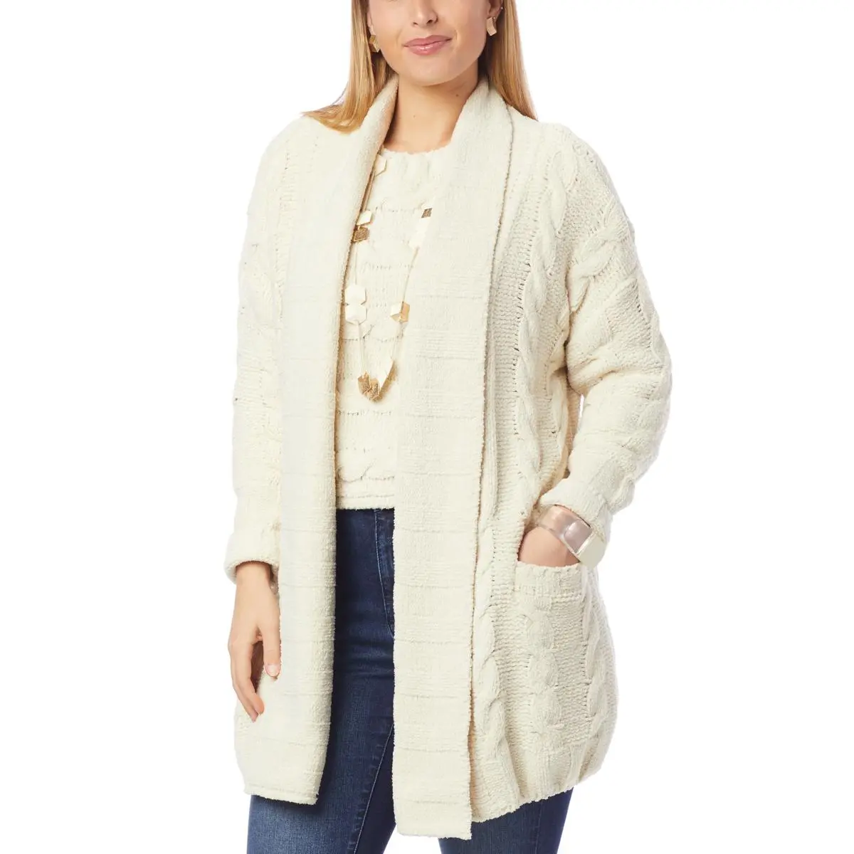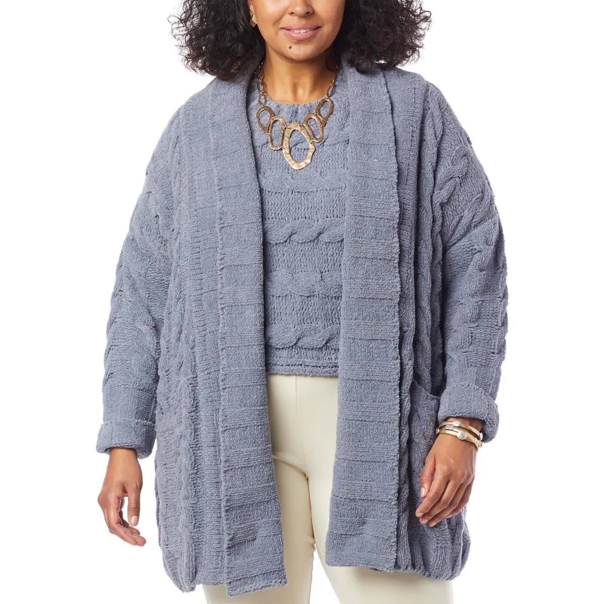 WynneLayers Plush Cable Knit Coatigan Plush cable knit patterns update this classic, cold-weather topper with superior style.